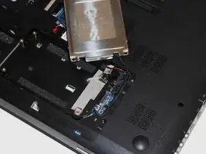 Снимите пустой кронштейн жёсткого диска и сам жёсткий диск. Отложите их в сторону до обратной сборки.
