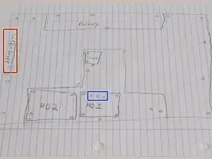Нарисуйте схему нижней части ноутбука. Обязательно отметьте все отверстия для винтов.
