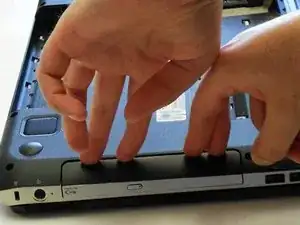 Поместите ногти между щелью оптического привода и корпусом ноутбука. Аккуратно вытащите привод из слота.