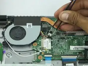 Отсоедините эти кабели от материнской платы с помощью пинцета.