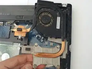 Поднимите сборку вентилятора из ноутбука.