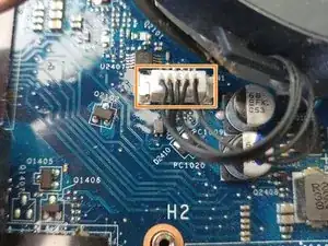 С помощью пинцета отключите кабель питания вентилятора от материнской платы.