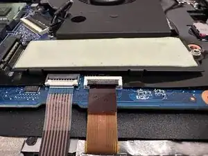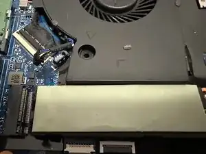 В этом вентиляторе предусмотрено место для теплоотводящей прокладки SSD. Если прокладка в хорошем состоянии, аккуратно перенесите её на новый вентилятор. Если прокладка повреждена, её необходимо заменить. Оригинальная прокладка должна иметь липкую сторону для фиксации на новом вентиляторе.