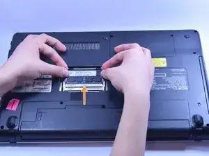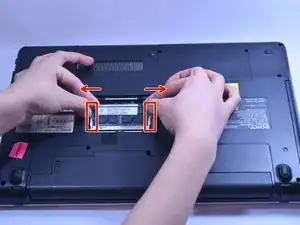 Аккуратно отведите белые пластиковые защёлки в стороны пальцами с обеих сторон.