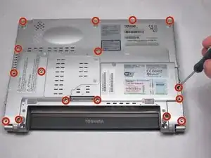 Удалите шестнадцать винтов в указанных местах с помощью отвертки Phillips 00.
