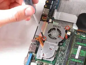 Удалите два винта размером 5.5 мм из вентилятора с помощью отвертки Phillips 00.