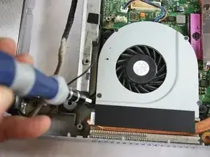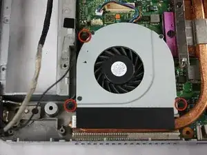 Найдите и удалите три винта Philips №00 длиной 5.65 мм, крепящие вентилятор.