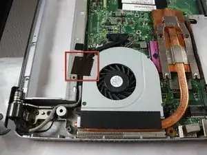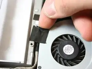 Найдите кусок электроизоляционной ленты, удерживающий провода экрана поверх вентилятора.