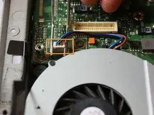 Найдите и отсоедините разъём, соединяющий вентилятор с материнской платой.