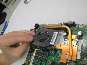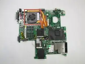Снимите вентилятор охлаждения с материнской платы.