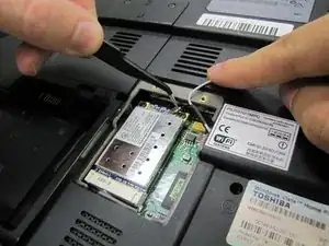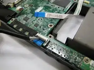 Пинцетом отсоедините два ленточных кабеля в нижней части ноутбука.