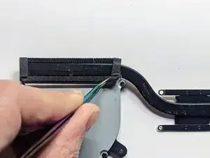 Снимите чёрный кожух, закрывающий разъём дисплея и радиатор.