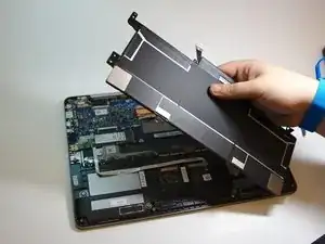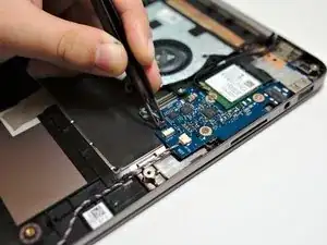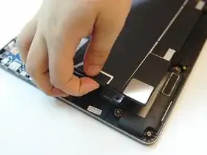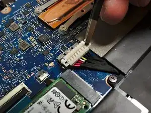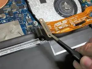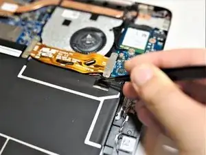 Отведите назад серебристый фиксатор разъёма аккумулятора с помощью пинцета с тупыми концами. Он должен легко сдвинуться назад, требуя минимального усилия.