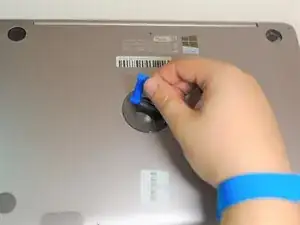 Прикрепите присоску к центру задней крышки и аккуратно поднимите её вверх.