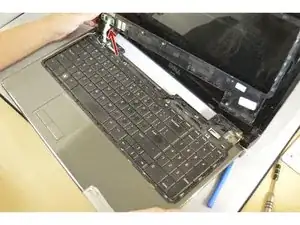 Далее находится провод, соединённый с нижней частью клавиатуры; если вы поднимете клавиатуру слишком быстро, он порвётся.
