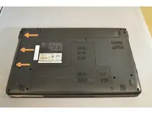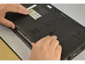 Найдите защёлку аккумулятора на нижней стороне компьютера и сдвиньте её вправо.