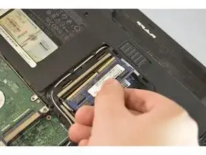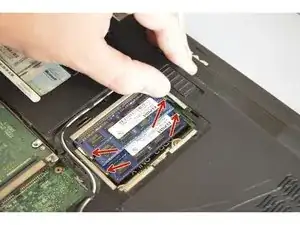 Осторожно отведите маленькие фиксаторы по бокам каждой планки памяти назад.