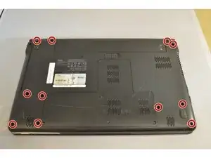 Отверткой с насадкой J0 снимите 11 винтов на нижней стороне компьютера.
