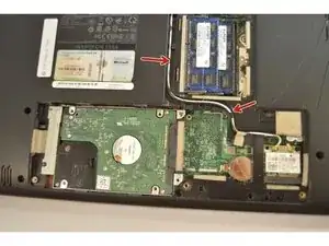 Отсоедините чёрный и белый провода от беспроводной карты.