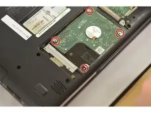 Отвинтите четыре винта, удерживающие жёсткий диск.