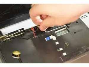 Переведите защёлку на компьютере, соединяющую ленточный кабель с клавиатурой.
