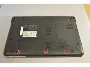 Найдите оптический привод с левой стороны при перевёрнутом компьютере.