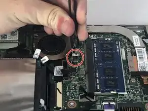 Отключите кабель вентилятора с помощью пинцета.
