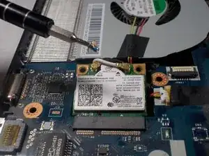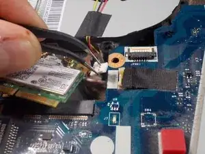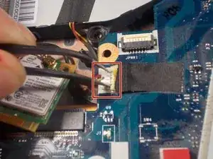 Используйте пинцет, чтобы отключить провод, соединяющий вентилятор с материнской платой.