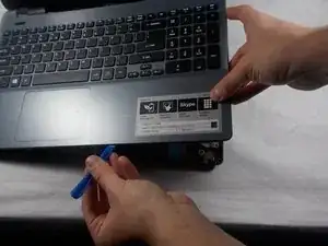 Снимите верхнюю панель ноутбука с помощью пластиковой лопатки.