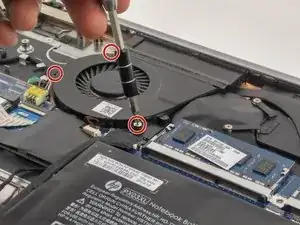 Используйте отвертку для удаления трех винтов, соединяющих вентилятор с материнской платой.