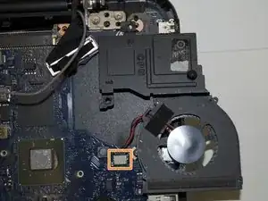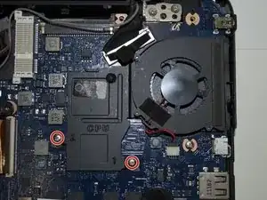 Используйте отвертку Philips #0 для удаления двух винтов, удерживающих вентилятор процессора.