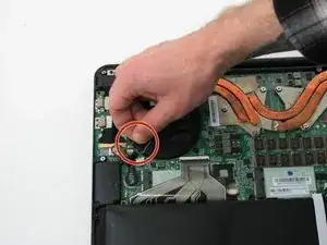 Отключите провод, идущий от вентилятора к белому разъему, но оставьте провод подключенным к вентилятору.