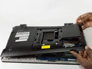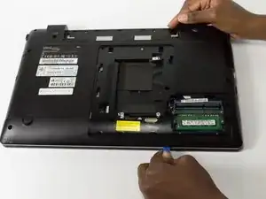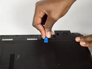Вставьте пластиковый инструмент в зазор между задней панелью и корпусом ноутбука.
