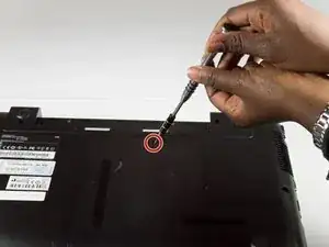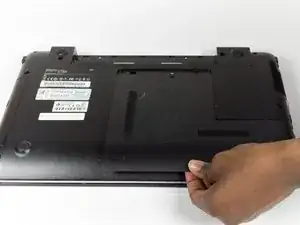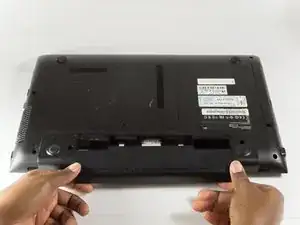 Переверните ноутбук задней стороной вверх, чтобы компонент аккумулятора оказался перед Вами.