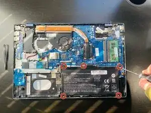 Снимите пять винтов, фиксирующих аккумулятор к корпусу, используя крестовую отвертку Phillips #0.