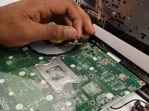 Снимите вентилятор с материнской платы.