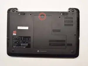 Переверните ноутбук на заднюю сторону, чтобы получить доступ к задней панели.