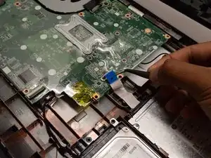 В этом руководстве показано, как снять вентилятор охлаждения с ноутбука HP Pavilion 15-d017cl. Для этого шага потребуется крестовая отвертка #1. Предварительные шаги должны быть выполнены и требуют использования лопатки, пинцета и инструмента iFixit opener. В руководстве по вентилятору сложных шагов нет. Будьте осторожны при отсоединении разъема кабеля в этом руководстве, так как провода могут быть случайно вытащены из вилки.