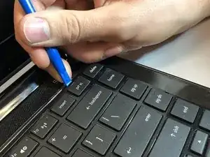 С помощью пластикового инструмента для вскрытия подденьте по кромке клавиатуры.