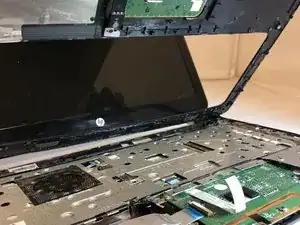 Используя пластиковую или металлическую лопатку, аккуратно разъедините панель для рук и остальную часть ноутбука.
