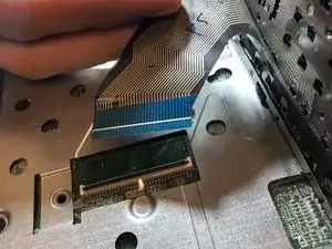 К клавиатуре подключён кабель к материнской плате. Не снимайте клавиатуру полностью, пока кабель не будет отключён.