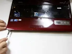 Отожмите пластину корпуса над клавиатурой металлической лопаткой и отложите её в сторону.