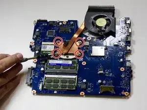 Выверните три винта с крестообразной шлицевой головкой 5 мм на материнской плате и один винт 5 мм на вентиляторе.