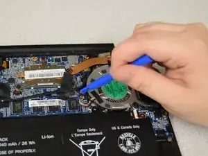 С помощью инструмента для открытия аккуратно отключите разъём вентилятора.