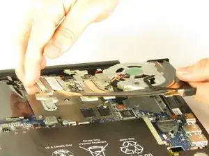 Поднимите аккумулятор и извлеките его из ноутбука.