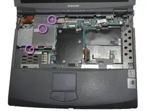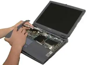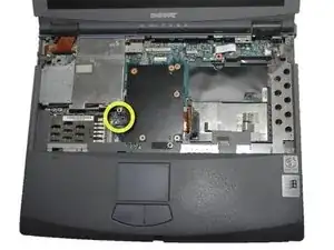 Снимите винт 4 мм на правой задней стороне ноутбука рядом с аудиопортами с помощью отвертки Phillips #0.