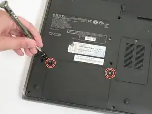 Используя отвёртку Phillips #0, отврутите два винта 4,0 мм, крепящие жёсткий диск к ноутбуку.