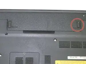 Одновременно нажимая вкладку «release» вверх, поднимите аккумулятор и потяните наружу, чтобы вынуть его из ноутбука.