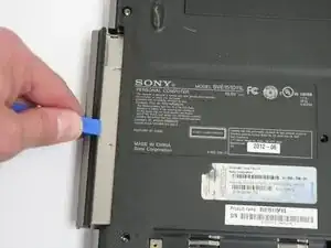 Используйте пластиковый инструмент для вскрытия, чтобы выдвинуть CD-ROM из ноутбука.