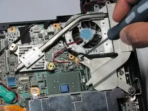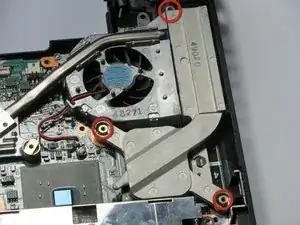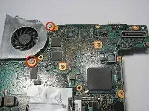 Переверните плату и найдите винты, крепящие вентилятор к плате.